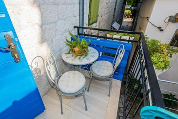Appartamento può accogliere 6 ospiti. I letti sono disposti nelle camere da letto che sono 2, su 70m2. Gli ospiti hanno a disposizione il proprio balcone per godere delle calde serate estive. Dall'appartamento si gode di una vista sul mare.