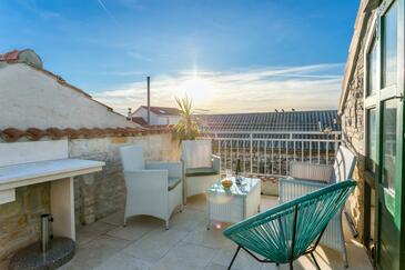 Casa può accogliere 6 ospiti. I letti sono disposti nelle camere da letto che sono 2, e nella sala da pranzo, su 78m2. Gli ospiti hanno a disposizione il proprio terrazzo per godere nelle calde serate estive. Le stanze dell'unità d'alloggio non sono connesse in un insieme. L'unità d'alloggio ha delle stanze separate dal resto dell'unità.