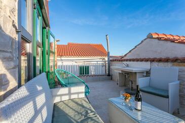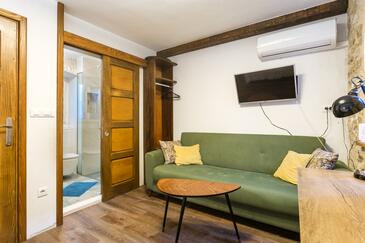 Casa può accogliere 6 ospiti. I letti sono disposti nelle camere da letto che sono 2, e nella sala da pranzo, su 78m2. Gli ospiti hanno a disposizione il proprio terrazzo per godere nelle calde serate estive. Le stanze dell'unità d'alloggio non sono connesse in un insieme. L'unità d'alloggio ha delle stanze separate dal resto dell'unità.