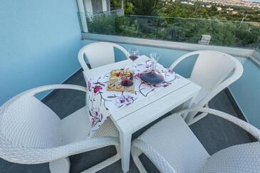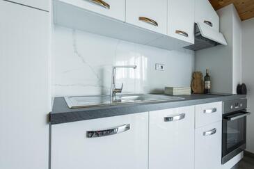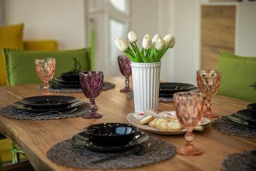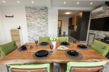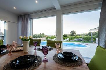 Casa può accogliere 9 ospiti. I letti sono disposti nelle camere da letto che sono 4, e nella camera di soggiorno, su 140m2. Gli ospiti hanno a disposizione il proprio terrazzo per godere nelle calde serate estive. Dalla casa si gode di una vista sul mare. Si può preparare il cibo utilizzando il barbecue comune. Durante il soggiorno gli ospiti possono utilizzare la piscina comune.