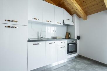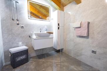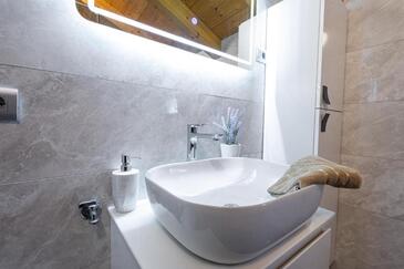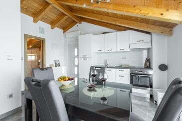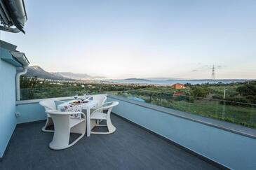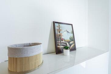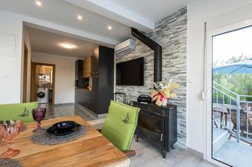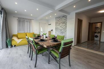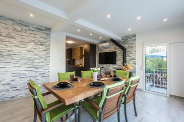 Casa può accogliere 9 ospiti. I letti sono disposti nelle camere da letto che sono 4, e nella camera di soggiorno, su 140m2. Gli ospiti hanno a disposizione il proprio terrazzo per godere nelle calde serate estive. Dalla casa si gode di una vista sul mare. Si può preparare il cibo utilizzando il barbecue comune. Durante il soggiorno gli ospiti possono utilizzare la piscina comune.