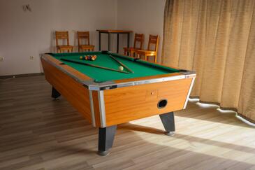 Casa può accogliere 16 ospiti. I letti sono disposti nelle camere da letto che sono 7, e nella camera di soggiorno, su 187m2. Gli ospiti hanno a disposizione il proprio terrazzo per godere nelle calde serate estive. Dalla casa si gode di una vista sul mare. Per il piacere totale e il relax c'è il barbecue privato solo per gli ospiti di quest'alloggio. Durante il soggiorno gli ospiti possono utilizzare la piscina comune.