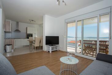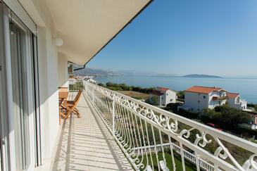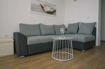Appartamento può accogliere 8 ospiti. I letti sono disposti nelle camere da letto che sono 3, e nella camera di soggiorno, su 83m2. Gli ospiti hanno a disposizione il proprio balcone per godere delle calde serate estive. Dall'appartamento si gode di una vista sul mare. Si può preparare il cibo utilizzando il barbecue comune.