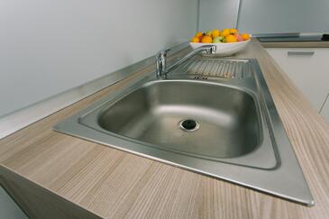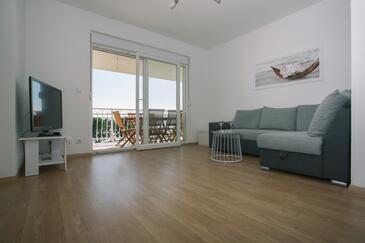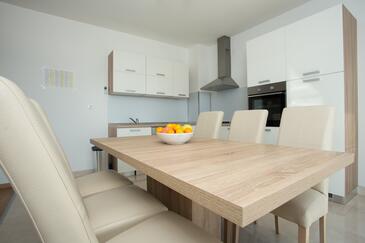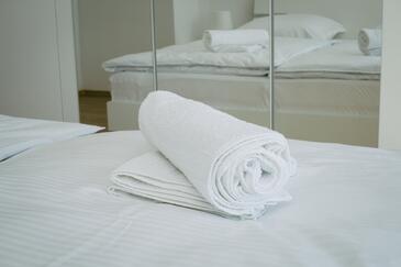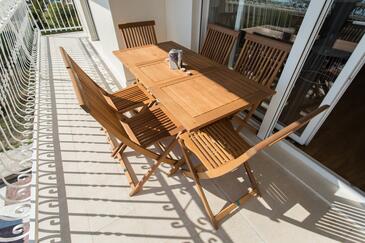 Appartamento può accogliere 8 ospiti. I letti sono disposti nelle camere da letto che sono 3, e nella camera di soggiorno, su 83m2. Gli ospiti hanno a disposizione il proprio balcone per godere delle calde serate estive. Dall'appartamento si gode di una vista sul mare. Si può preparare il cibo utilizzando il barbecue comune.