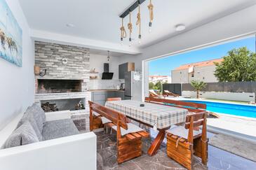 Casa può accogliere 8 ospiti. I letti sono disposti nelle camere da letto che sono 3, e nella camera di soggiorno, su 131m2. Gli ospiti hanno a disposizione il proprio terrazzo per godere nelle calde serate estive. Per il piacere totale e il relax c'è il barbecue privato solo per gli ospiti di quest'alloggio. Durante il soggiorno gli ospiti si possono rilassare nella piscina privata. Le stanze dell'unità d'alloggio non sono connesse in un insieme. L'unità d'alloggio ha delle stanze separate dal resto dell'unità.