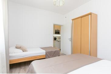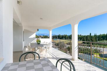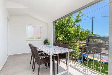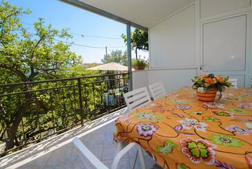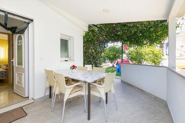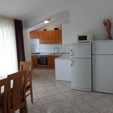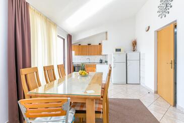 Appartamento può accogliere 8 ospiti. I letti sono disposti nelle camere da letto che sono 4, su 107m2. Gli ospiti hanno a disposizione il proprio terrazzo per godere nelle calde serate estive. Dall'appartamento si gode di una vista sul mare. Si può preparare il cibo utilizzando il barbecue comune.