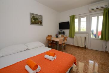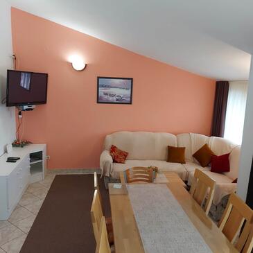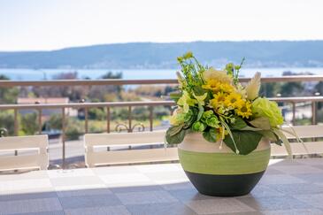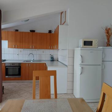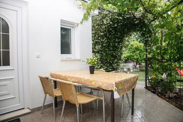 Appartamento può accogliere 8 ospiti. I letti sono disposti nelle camere da letto che sono 4, su 107m2. Gli ospiti hanno a disposizione il proprio terrazzo per godere nelle calde serate estive. Dall'appartamento si gode di una vista sul mare. Si può preparare il cibo utilizzando il barbecue comune.
