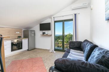 Appartamento può accogliere 12 ospiti. I letti sono disposti nelle camere da letto che sono 7, su 153m2. Gli ospiti hanno a disposizione il proprio terrazzo per godere nelle calde serate estive. Dall'appartamento si gode di una vista sul mare. Per il piacere totale e il relax c'è il barbecue privato solo per gli ospiti di quest'alloggio. Durante il soggiorno gli ospiti si possono rilassare nella piscina privata. Nell'unità di alloggio si possono portare gli animali domestici senza alcun pagamento supplementare. Le stanze dell'unità d'alloggio non sono connesse in un insieme.
