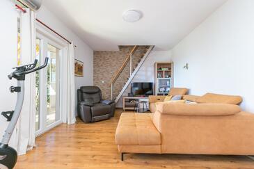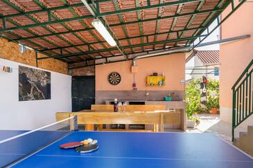 Appartamento può accogliere 12 ospiti. I letti sono disposti nelle camere da letto che sono 7, su 153m2. Gli ospiti hanno a disposizione il proprio terrazzo per godere nelle calde serate estive. Dall'appartamento si gode di una vista sul mare. Per il piacere totale e il relax c'è il barbecue privato solo per gli ospiti di quest'alloggio. Durante il soggiorno gli ospiti si possono rilassare nella piscina privata. Nell'unità di alloggio si possono portare gli animali domestici senza alcun pagamento supplementare. Le stanze dell'unità d'alloggio non sono connesse in un insieme.