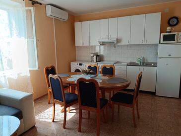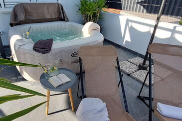 Appartamento può accogliere 5 ospiti. I letti sono disposti nelle camere da letto che sono 3, su 90m2. Gli ospiti hanno a disposizione il proprio terrazzo per godere nelle calde serate estive. Per il piacere totale e il relax c'è il barbecue privato solo per gli ospiti di quest'alloggio. Nell'unità di alloggio si possono portare gli animali domestici con un pagamento supplementare.