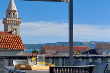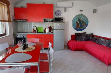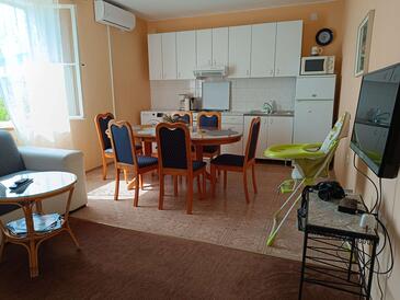 Appartamento può accogliere 5 ospiti. I letti sono disposti nelle camere da letto che sono 3, su 90m2. Gli ospiti hanno a disposizione il proprio terrazzo per godere nelle calde serate estive. Per il piacere totale e il relax c'è il barbecue privato solo per gli ospiti di quest'alloggio. Nell'unità di alloggio si possono portare gli animali domestici con un pagamento supplementare.