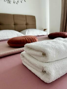 Appartamento può accogliere 5 ospiti. I letti sono disposti nelle camere da letto che sono 2, e nella camera di soggiorno, su 70m2. Gli ospiti hanno a disposizione il proprio terrazzo per godere nelle calde serate estive. Si può preparare il cibo utilizzando il barbecue comune. Nell'unità di alloggio si possono portare gli animali domestici senza alcun pagamento supplementare.