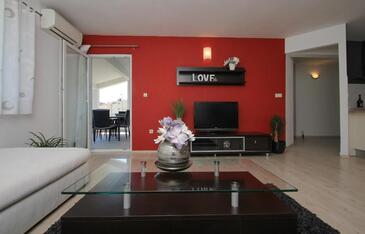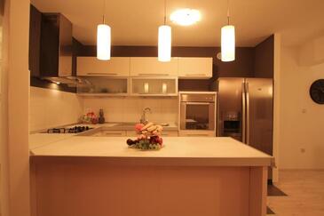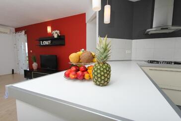 Appartamento può accogliere 6 ospiti. I letti sono disposti nelle camere da letto che sono 3, su 105m2. Gli ospiti hanno a disposizione il proprio terrazzo per godere nelle calde serate estive. Dall'appartamento si gode di una vista sul mare. Si può preparare il cibo utilizzando il barbecue comune.