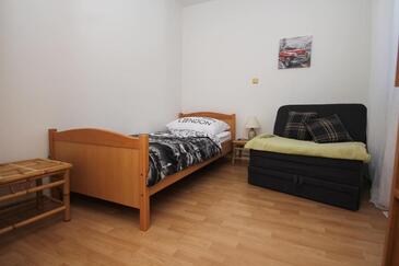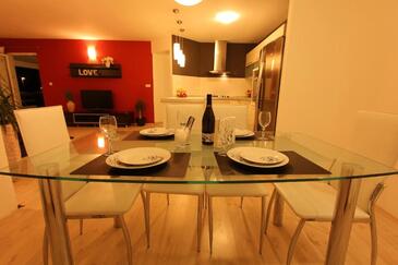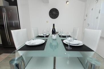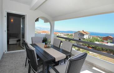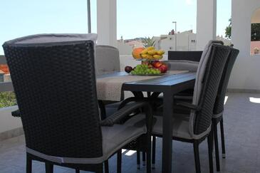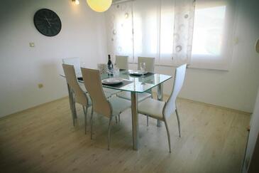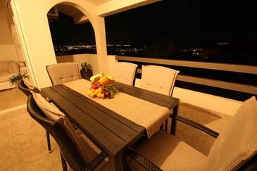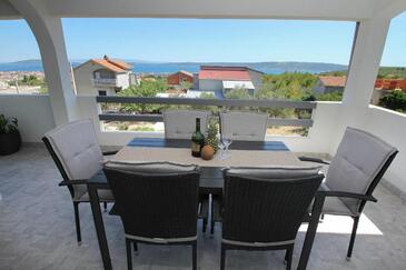 Appartamento può accogliere 6 ospiti. I letti sono disposti nelle camere da letto che sono 3, su 105m2. Gli ospiti hanno a disposizione il proprio terrazzo per godere nelle calde serate estive. Dall'appartamento si gode di una vista sul mare. Si può preparare il cibo utilizzando il barbecue comune.