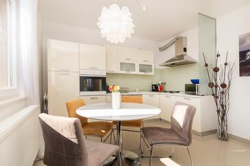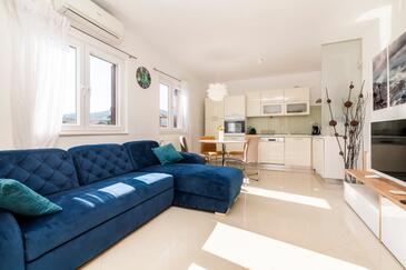 Appartamento può accogliere 8 ospiti. I letti sono disposti nelle camere da letto che sono 4, su 110m2. Gli ospiti hanno a disposizione il proprio terrazzo per godere nelle calde serate estive. Per il piacere totale e il relax c'è il barbecue privato solo per gli ospiti di quest'alloggio. Durante il soggiorno gli ospiti possono utilizzare la piscina comune. Nell'unità di alloggio si possono portare gli animali domestici con un pagamento supplementare.