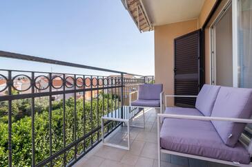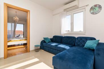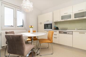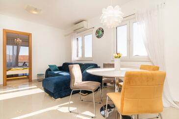 Appartamento può accogliere 8 ospiti. I letti sono disposti nelle camere da letto che sono 4, su 110m2. Gli ospiti hanno a disposizione il proprio terrazzo per godere nelle calde serate estive. Per il piacere totale e il relax c'è il barbecue privato solo per gli ospiti di quest'alloggio. Durante il soggiorno gli ospiti possono utilizzare la piscina comune. Nell'unità di alloggio si possono portare gli animali domestici con un pagamento supplementare.