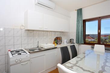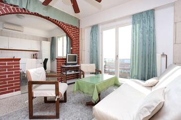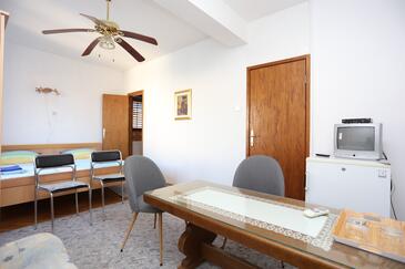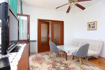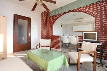 Appartamento può accogliere 8 ospiti. I letti sono disposti nelle camere da letto che sono 3, e nella camera di soggiorno, su 82m2. Gli ospiti hanno a disposizione il proprio balcone per godere delle calde serate estive. Dall'appartamento si gode di una vista sul mare. Si può preparare il cibo utilizzando il barbecue comune. Nell'unità di alloggio si possono portare gli animali domestici con un pagamento supplementare. L'unità d'alloggio non è separata con porta dal resto della casa.