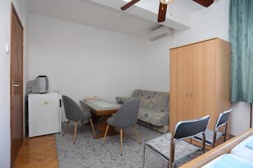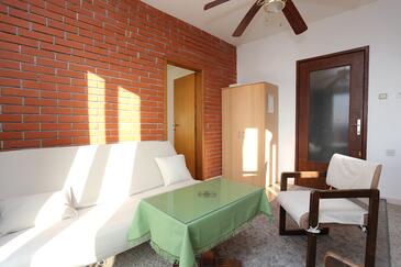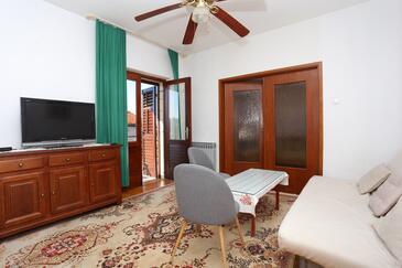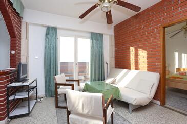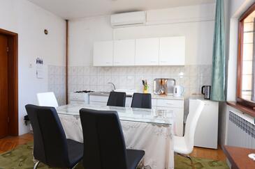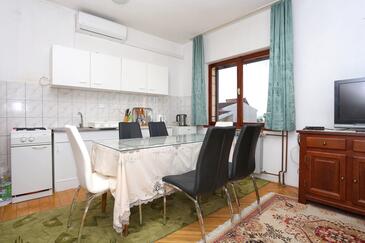 Appartamento può accogliere 8 ospiti. I letti sono disposti nelle camere da letto che sono 3, e nella camera di soggiorno, su 82m2. Gli ospiti hanno a disposizione il proprio balcone per godere delle calde serate estive. Dall'appartamento si gode di una vista sul mare. Si può preparare il cibo utilizzando il barbecue comune. Nell'unità di alloggio si possono portare gli animali domestici con un pagamento supplementare. L'unità d'alloggio non è separata con porta dal resto della casa.