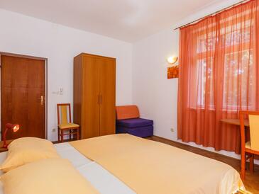 Appartamento può accogliere 13 ospiti. I letti sono disposti nelle camere da letto che sono 5, su 123m2. Gli ospiti hanno a disposizione il proprio terrazzo per godere nelle calde serate estive. Dall'appartamento si gode di una vista sul mare. Si può preparare il cibo utilizzando il barbecue comune. L'unità d'alloggio ha delle stanze separate dal resto dell'unità.