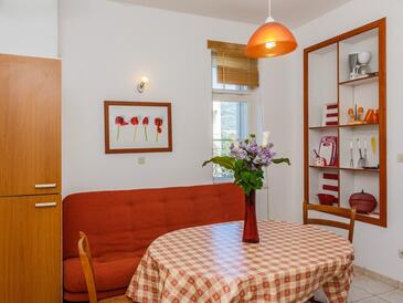 Appartamento può accogliere 10 ospiti. I letti sono disposti nelle camere da letto che sono 4, su 108m2. Gli ospiti hanno a disposizione il proprio terrazzo per godere nelle calde serate estive. Dall'appartamento si gode di una vista sul mare. Si può preparare il cibo utilizzando il barbecue comune. L'unità d'alloggio ha delle stanze separate dal resto dell'unità.
