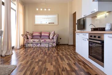 Appartamento può accogliere 4 ospiti. I letti sono disposti nelle camere da letto che sono 1, e nella camera di soggiorno, su 28m2. Gli ospiti hanno a disposizione il proprio balcone per godere delle calde serate estive. Si può preparare il cibo utilizzando il barbecue comune.