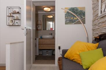 Casa può accogliere 5 ospiti. I letti sono disposti nelle camere da letto che sono 2, e nella camera di soggiorno, su 99m2. Gli ospiti hanno a disposizione il proprio terrazzo per godere nelle calde serate estive. Dalla casa si gode di una vista sul mare. Per il piacere totale e il relax c'è il barbecue privato solo per gli ospiti di quest'alloggio. Durante il soggiorno gli ospiti si possono rilassare nella piscina privata.