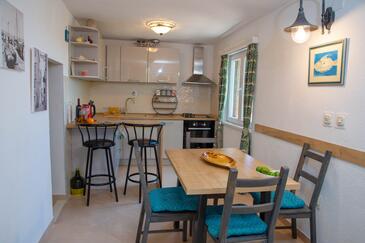 Casa può accogliere 5 ospiti. I letti sono disposti nelle camere da letto che sono 2, e nella camera di soggiorno, su 99m2. Gli ospiti hanno a disposizione il proprio terrazzo per godere nelle calde serate estive. Dalla casa si gode di una vista sul mare. Per il piacere totale e il relax c'è il barbecue privato solo per gli ospiti di quest'alloggio. Durante il soggiorno gli ospiti si possono rilassare nella piscina privata.
