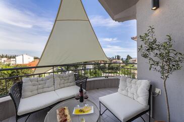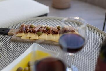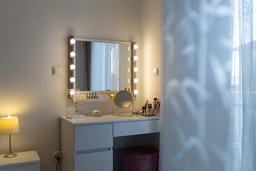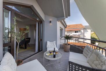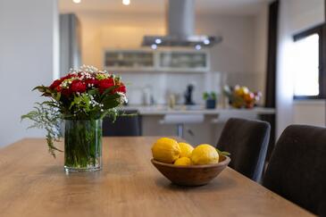 Appartamento può accogliere 7 ospiti. I letti sono disposti nelle camere da letto che sono 3, e nella camera di soggiorno, su 84m2. Gli ospiti hanno a disposizione il proprio balcone per godere delle calde serate estive. Dall'appartamento si gode di una vista sul mare. Nell'unità di alloggio si possono portare gli animali domestici senza alcun pagamento supplementare.