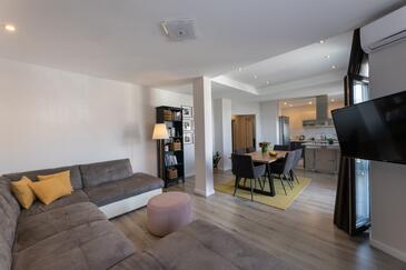 Appartamento può accogliere 7 ospiti. I letti sono disposti nelle camere da letto che sono 3, e nella camera di soggiorno, su 84m2. Gli ospiti hanno a disposizione il proprio balcone per godere delle calde serate estive. Dall'appartamento si gode di una vista sul mare. Nell'unità di alloggio si possono portare gli animali domestici senza alcun pagamento supplementare.