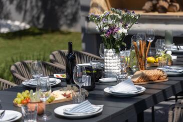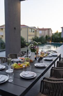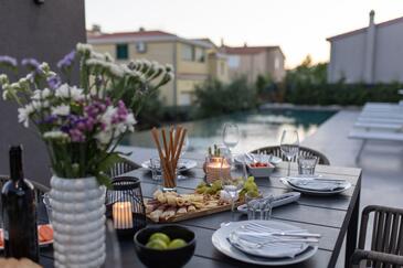 Casa può accogliere 9 ospiti. I letti sono disposti nelle camere da letto che sono 5, su 177m2. Gli ospiti hanno a disposizione il proprio terrazzo per godere nelle calde serate estive. Per il piacere totale e il relax c'è il barbecue privato solo per gli ospiti di quest'alloggio. Durante il soggiorno gli ospiti si possono rilassare nella piscina privata.