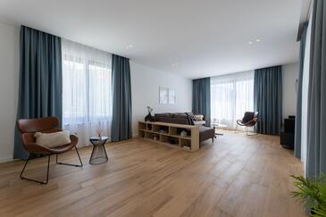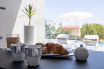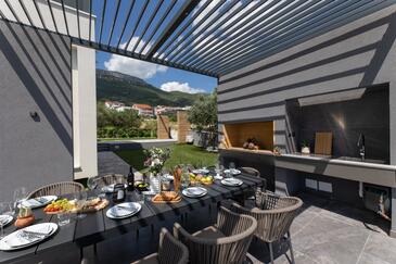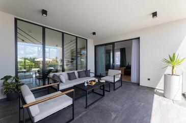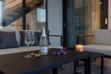 Casa può accogliere 9 ospiti. I letti sono disposti nelle camere da letto che sono 5, su 177m2. Gli ospiti hanno a disposizione il proprio terrazzo per godere nelle calde serate estive. Per il piacere totale e il relax c'è il barbecue privato solo per gli ospiti di quest'alloggio. Durante il soggiorno gli ospiti si possono rilassare nella piscina privata.
