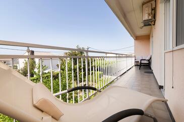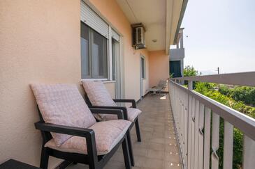 Appartamento può accogliere 6 ospiti. I letti sono disposti nelle camere da letto che sono 3, su 84m2. Gli ospiti hanno a disposizione il proprio terrazzo per godere nelle calde serate estive. Si può preparare il cibo utilizzando il barbecue comune.