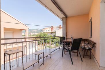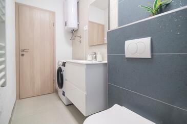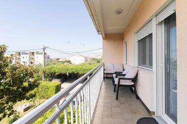 Appartamento può accogliere 6 ospiti. I letti sono disposti nelle camere da letto che sono 3, su 84m2. Gli ospiti hanno a disposizione il proprio terrazzo per godere nelle calde serate estive. Si può preparare il cibo utilizzando il barbecue comune.