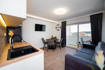 Appartamento può accogliere 3 ospiti. I letti sono disposti nelle camere da letto che sono 1, e nella camera di soggiorno, su 34m2. Gli ospiti hanno a disposizione il proprio balcone per godere delle calde serate estive. Dall'appartamento si gode di una vista sul mare.