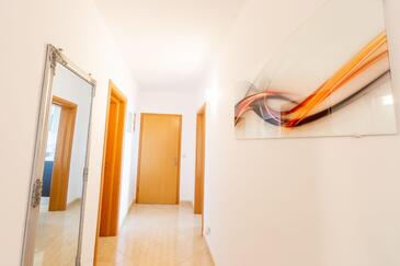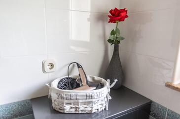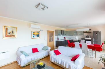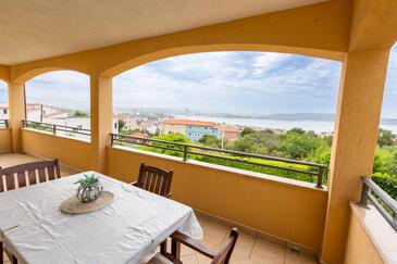 Appartamento può accogliere 7 ospiti. I letti sono disposti nelle camere da letto che sono 3, su 95m2. Gli ospiti hanno a disposizione il proprio terrazzo per godere nelle calde serate estive. Dall'appartamento si gode di una vista sul mare. Si può preparare il cibo utilizzando il barbecue comune.