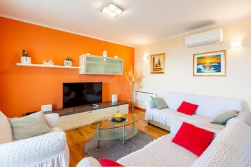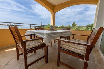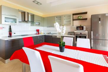 Appartamento può accogliere 7 ospiti. I letti sono disposti nelle camere da letto che sono 3, su 95m2. Gli ospiti hanno a disposizione il proprio terrazzo per godere nelle calde serate estive. Dall'appartamento si gode di una vista sul mare. Si può preparare il cibo utilizzando il barbecue comune.