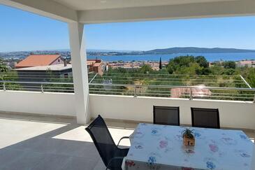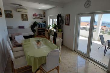 Appartamento può accogliere 6 ospiti. I letti sono disposti nelle camere da letto che sono 2, e nella camera di soggiorno, su 75m2. Gli ospiti hanno a disposizione il proprio terrazzo per godere nelle calde serate estive. Dall'appartamento si gode di una vista sul mare. Si può preparare il cibo utilizzando il barbecue comune.