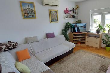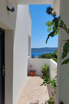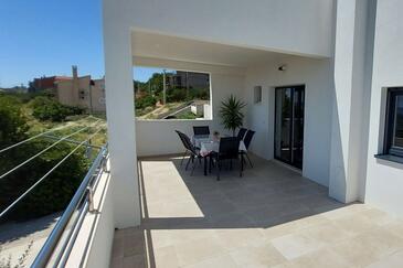 Appartamento può accogliere 6 ospiti. I letti sono disposti nelle camere da letto che sono 2, e nella camera di soggiorno, su 75m2. Gli ospiti hanno a disposizione il proprio terrazzo per godere nelle calde serate estive. Dall'appartamento si gode di una vista sul mare. Si può preparare il cibo utilizzando il barbecue comune.