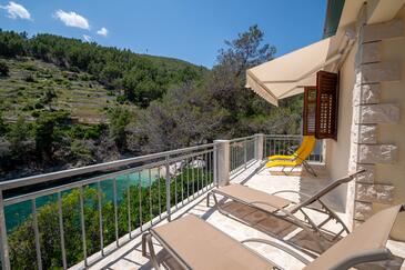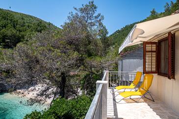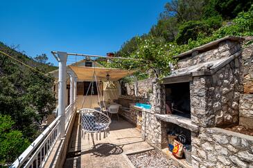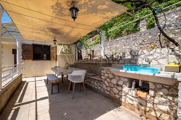 Casa può accogliere 4 ospiti. I letti sono disposti nelle camere da letto che sono 2, su 30m2. Gli ospiti hanno a disposizione il proprio terrazzo per godere nelle calde serate estive. Dalla casa si gode di una vista sul mare. Per il piacere totale e il relax c'è il barbecue privato solo per gli ospiti di quest'alloggio. Nell'unità di alloggio si possono portare gli animali domestici con un pagamento supplementare.