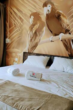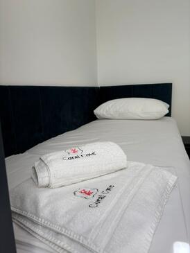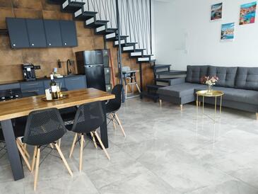 Casa può accogliere 8 ospiti. I letti sono disposti nelle camere da letto che sono 3, e nella camera di soggiorno, su 74m2. Gli ospiti hanno a disposizione il proprio terrazzo per godere nelle calde serate estive. Dalla casa si gode di una vista sul mare. Per il piacere totale e il relax c'è il barbecue privato solo per gli ospiti di quest'alloggio. Durante il soggiorno gli ospiti si possono rilassare nella piscina privata.