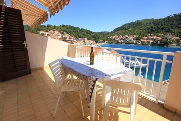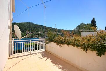 Appartamento può accogliere 8 ospiti. I letti sono disposti nelle camere da letto che sono 4, su 96m2. Gli ospiti hanno a disposizione il proprio terrazzo per godere nelle calde serate estive. Dall'appartamento si gode di una vista sul mare. Si può preparare il cibo utilizzando il barbecue comune.