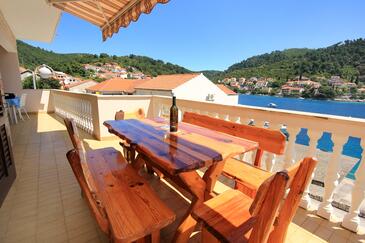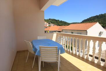 Appartamento può accogliere 8 ospiti. I letti sono disposti nelle camere da letto che sono 4, su 96m2. Gli ospiti hanno a disposizione il proprio terrazzo per godere nelle calde serate estive. Dall'appartamento si gode di una vista sul mare. Si può preparare il cibo utilizzando il barbecue comune.
