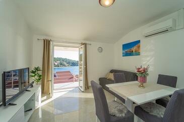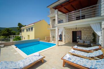 Casa può accogliere 12 ospiti. I letti sono disposti nelle camere da letto che sono 5, e nella camera di soggiorno, su 158m2. Gli ospiti hanno a disposizione il proprio terrazzo per godere nelle calde serate estive. Dalla casa si gode di una vista sul mare. Per il piacere totale e il relax c'è il barbecue privato solo per gli ospiti di quest'alloggio. Durante il soggiorno gli ospiti si possono rilassare nella piscina privata. Le stanze dell'unità d'alloggio non sono connesse in un insieme.