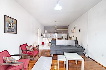 Casa può accogliere 8 ospiti. I letti sono disposti nelle camere da letto che sono 3, e nella camera di soggiorno, su 77m2. Gli ospiti hanno a disposizione il proprio terrazzo per godere nelle calde serate estive. Dalla casa si gode di una vista sul mare. Si può preparare il cibo utilizzando il barbecue comune. Nell'unità di alloggio si possono portare gli animali domestici senza alcun pagamento supplementare.