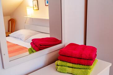 Appartamento può accogliere 4 ospiti. I letti sono disposti nelle camere da letto che sono 2, su 54m2. Gli ospiti hanno a disposizione il proprio terrazzo per godere nelle calde serate estive. Dall'appartamento si gode di una vista sul mare.