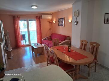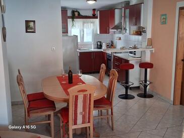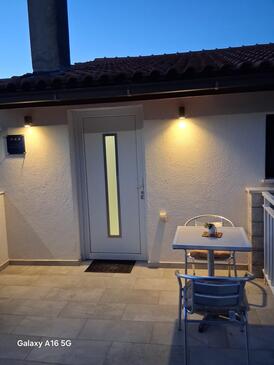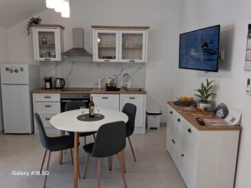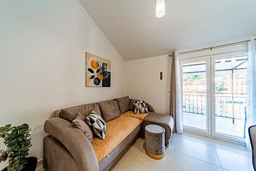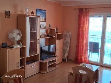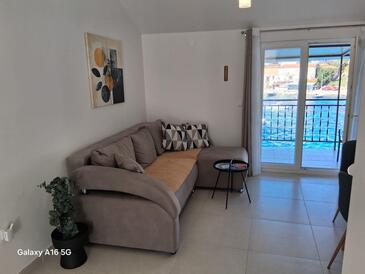 Appartamento può accogliere 5 ospiti. I letti sono disposti nelle camere da letto che sono 2, e nella camera di soggiorno, su 60m2. Gli ospiti hanno a disposizione il proprio terrazzo per godere nelle calde serate estive. Dall'appartamento si gode di una vista sul mare. Si può preparare il cibo utilizzando il barbecue comune.