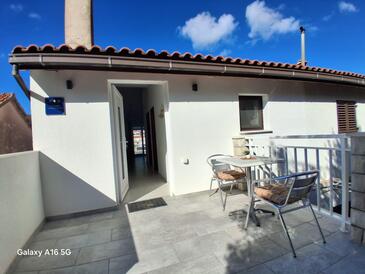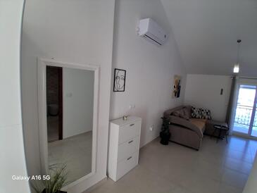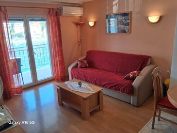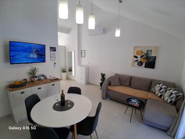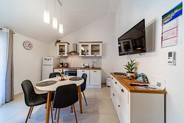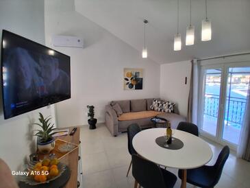 Appartamento può accogliere 5 ospiti. I letti sono disposti nelle camere da letto che sono 2, e nella camera di soggiorno, su 60m2. Gli ospiti hanno a disposizione il proprio terrazzo per godere nelle calde serate estive. Dall'appartamento si gode di una vista sul mare. Si può preparare il cibo utilizzando il barbecue comune.