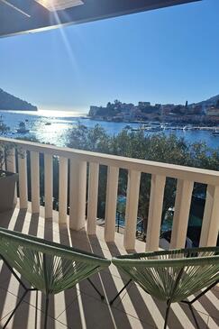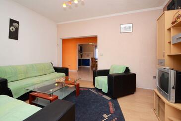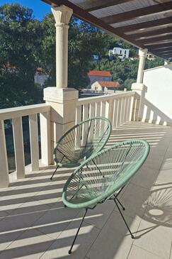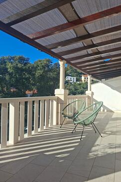 Appartamento può accogliere 5 ospiti. I letti sono disposti nelle camere da letto che sono 3, su 77m2. Gli ospiti hanno a disposizione il proprio terrazzo per godere nelle calde serate estive. Dall'appartamento si gode di una vista sul mare.