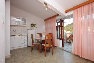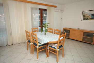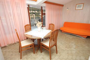Appartamento può accogliere 5 ospiti. I letti sono disposti nelle camere da letto che sono 2, e nella camera di soggiorno, su 40m2. Gli ospiti hanno a disposizione il proprio terrazzo per godere nelle calde serate estive. Dall'appartamento si gode di una vista sul mare. Si può preparare il cibo utilizzando il barbecue comune.