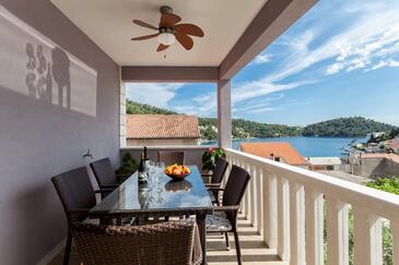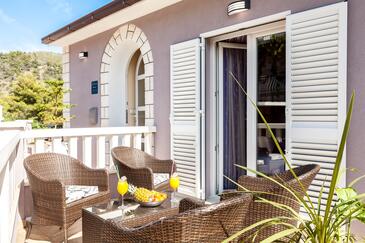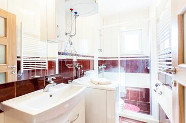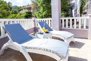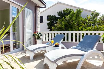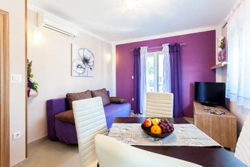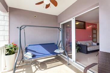 Appartamento può accogliere 10 ospiti. I letti sono disposti nelle camere da letto che sono 3, e nella camera di soggiorno, su 101m2. Gli ospiti hanno a disposizione il proprio terrazzo per godere nelle calde serate estive. Dall'appartamento si gode di una vista sul mare. Si può preparare il cibo utilizzando il barbecue comune.
